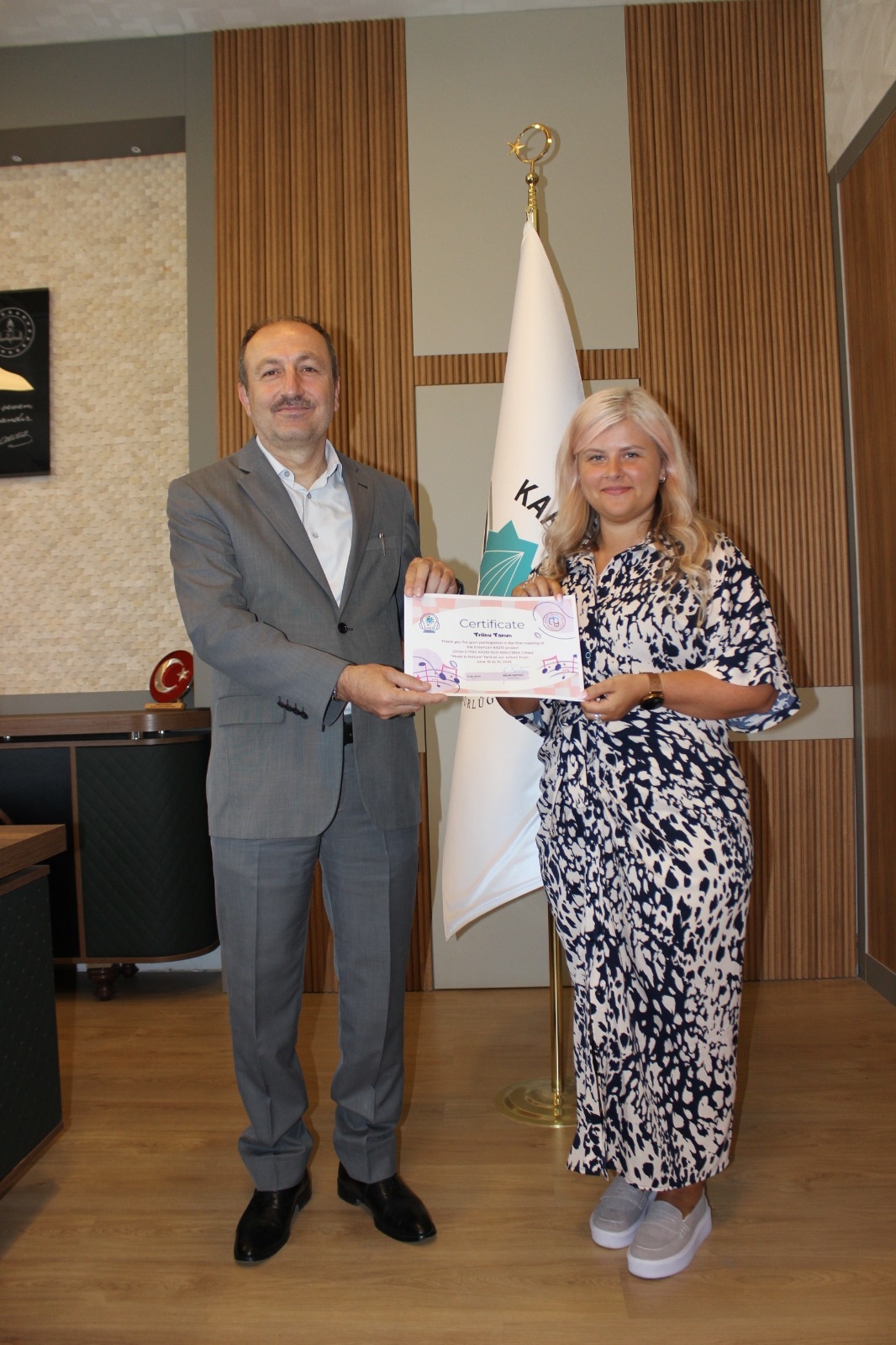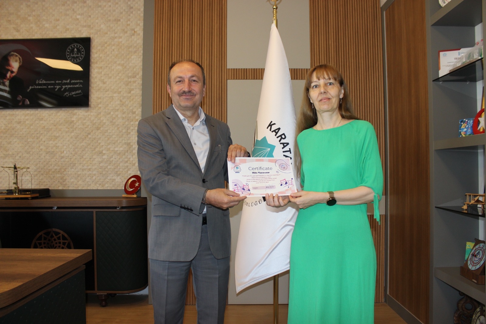 Ziyaret sırasında proje hakkında bilgi paylaşımında bulunulurken, kültürel etkileşim ve uluslararası eğitim iş birliklerinin önemi vurgulandı. İlçe Millî Eğitim Müdürümüz Sayın Turan Kayacılar, proje faaliyetlerine katılan konuk öğretmen ve öğrencilere katılım sertifikalarını takdim etti.