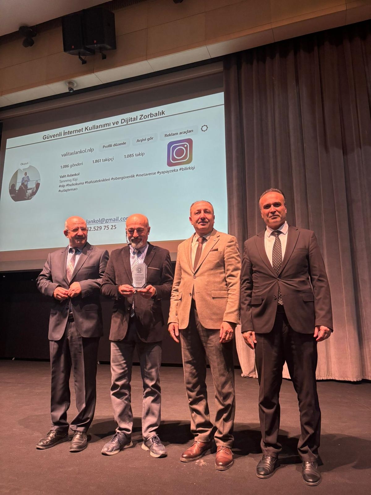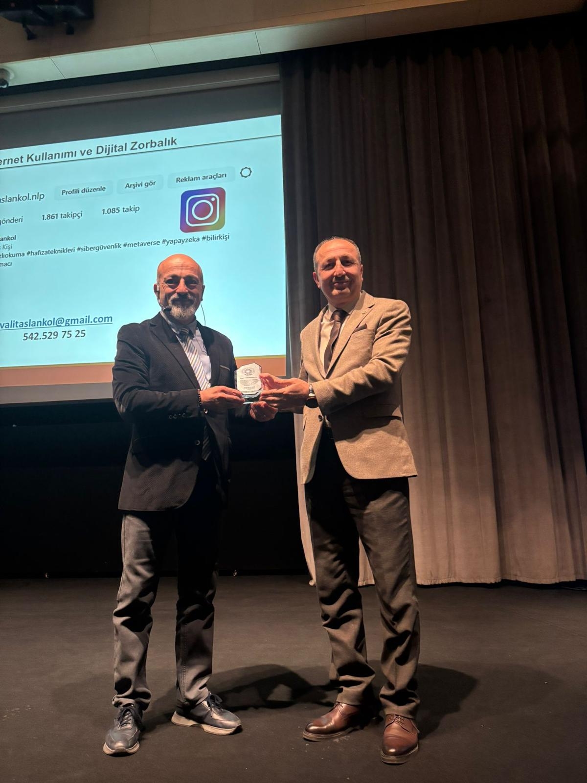 Program sonunda, Karatay İlçe Millî Eğitim Müdürü Turan Kayacılar, değerli paylaşımlarından dolayı Siber Güvenlik Uzmanı Valit Aslankol'a plaket takdim etti.