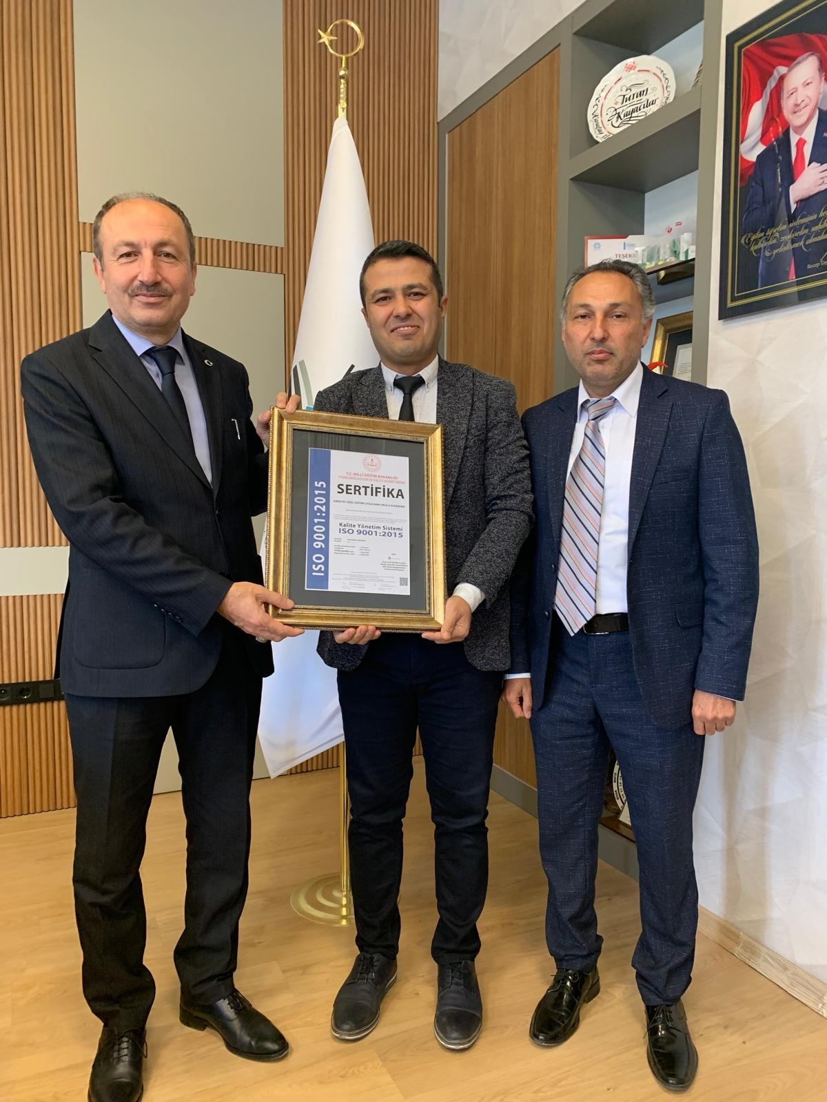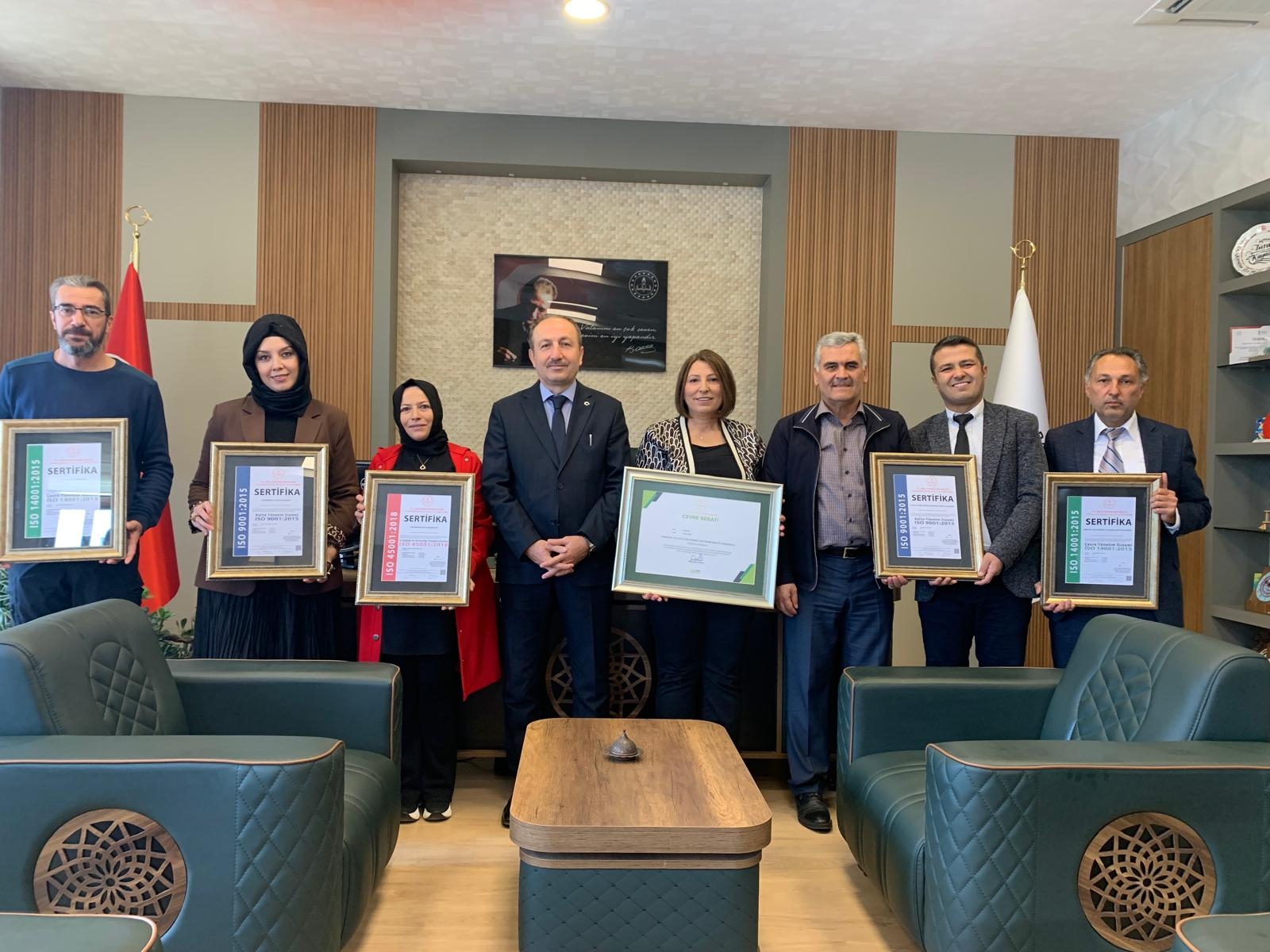 Bakanlığımızca yürütülen ISO Yönetim Sistemleri çalışmaları kapsamında denetimlerini başarıyla tamamlayan okullarımıza sertifikaları ve beratları, İlçe Millî Eğitim Müdürümüz Turan KAYACILAR tarafından takdim edildi.
