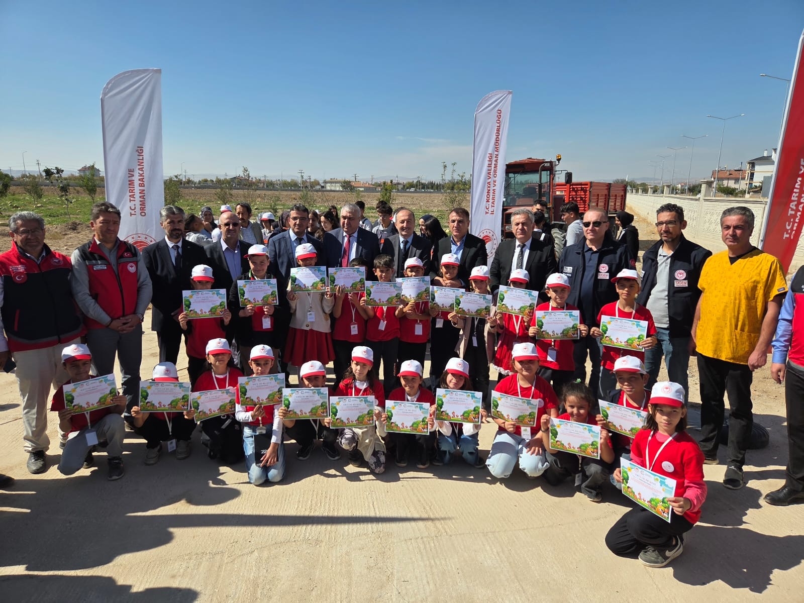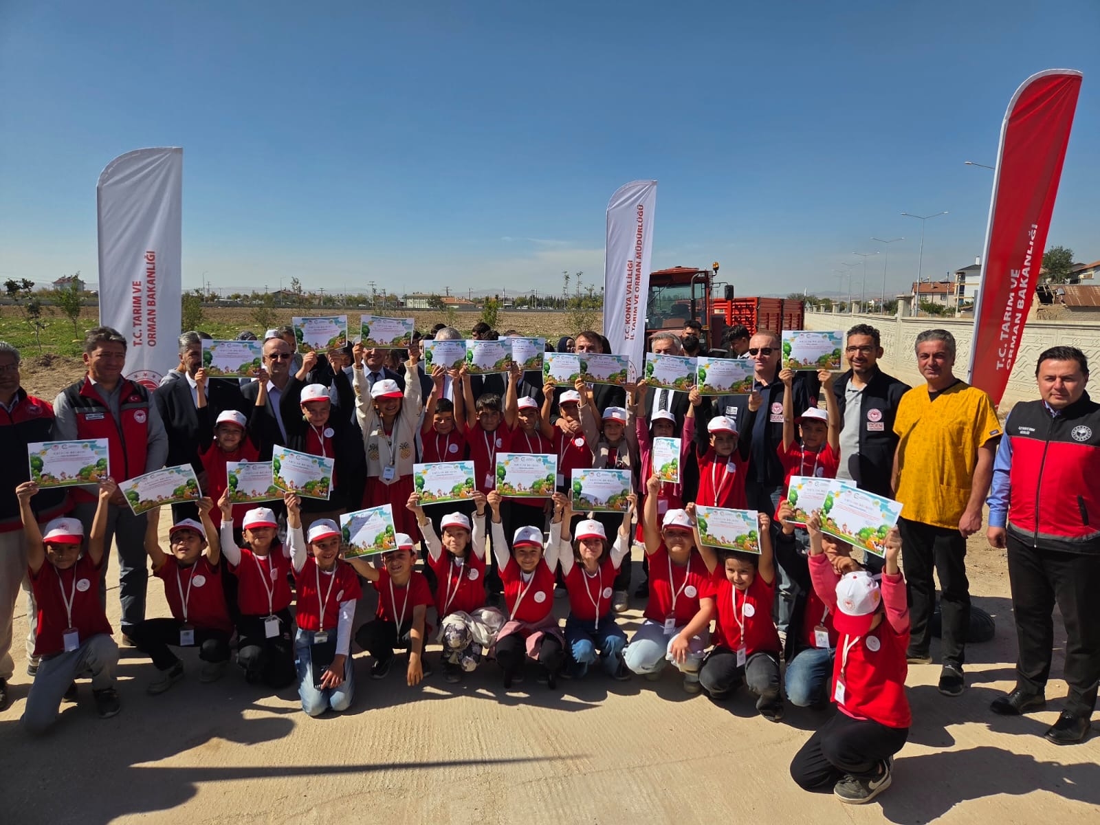 Konya İl Tarım ve Orman Müdürlüğü ile Konya İl Milli Eğitim Müdürlüğü iş birliğiyle düzenlenen "Lider Çocuk Tarım Kampı" programına katılan ilkokul 4. sınıf öğrencilerinin sertifikaları, protokol üyeleri tarafından takdim edildi.