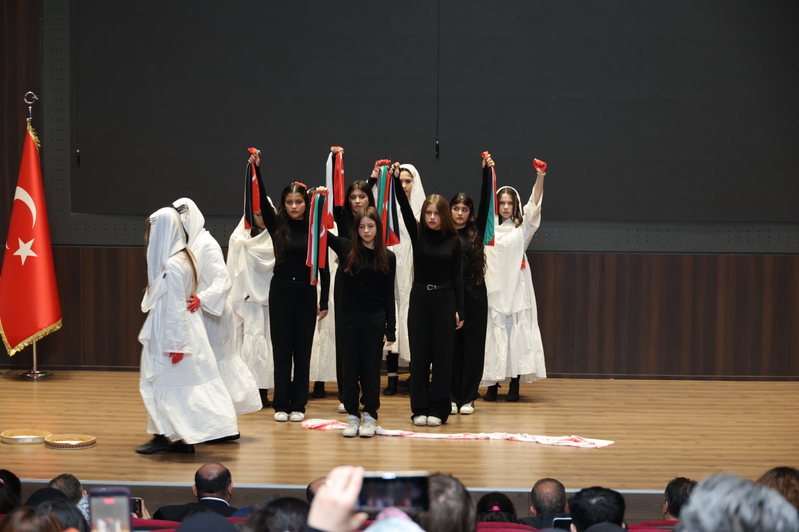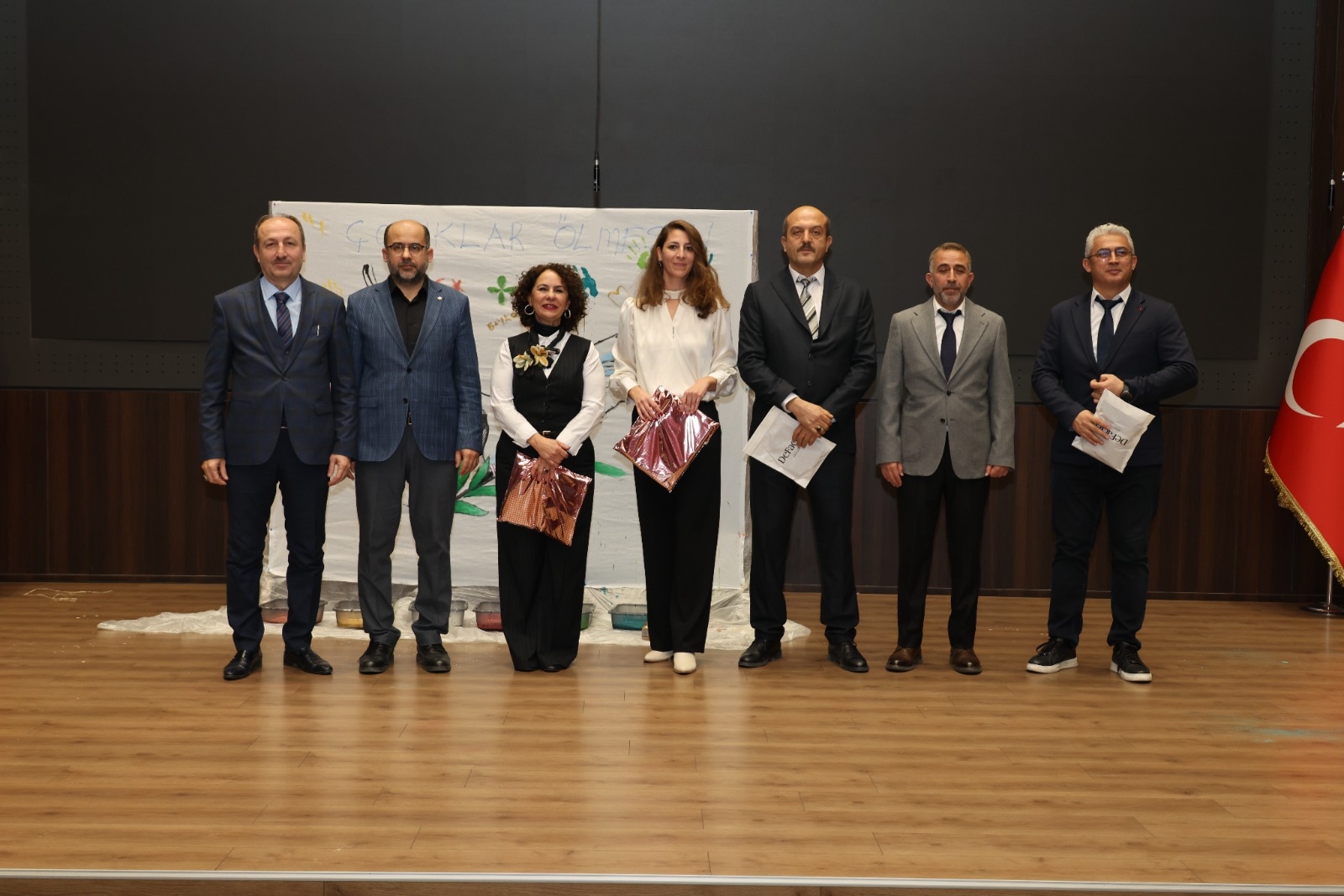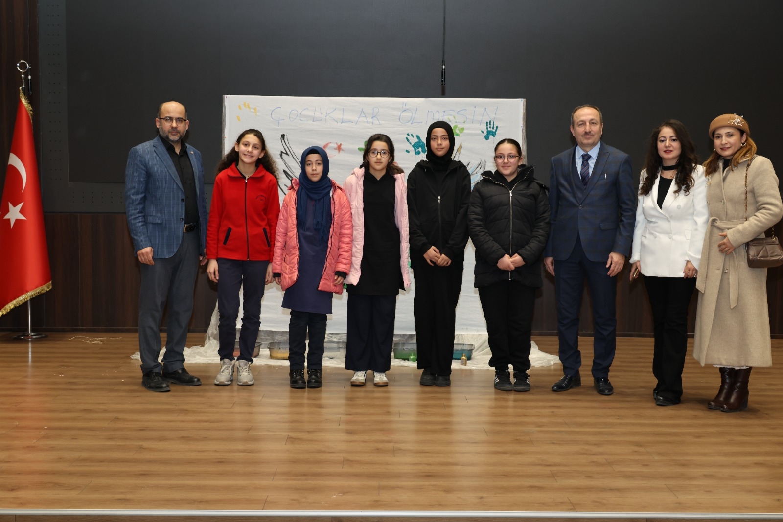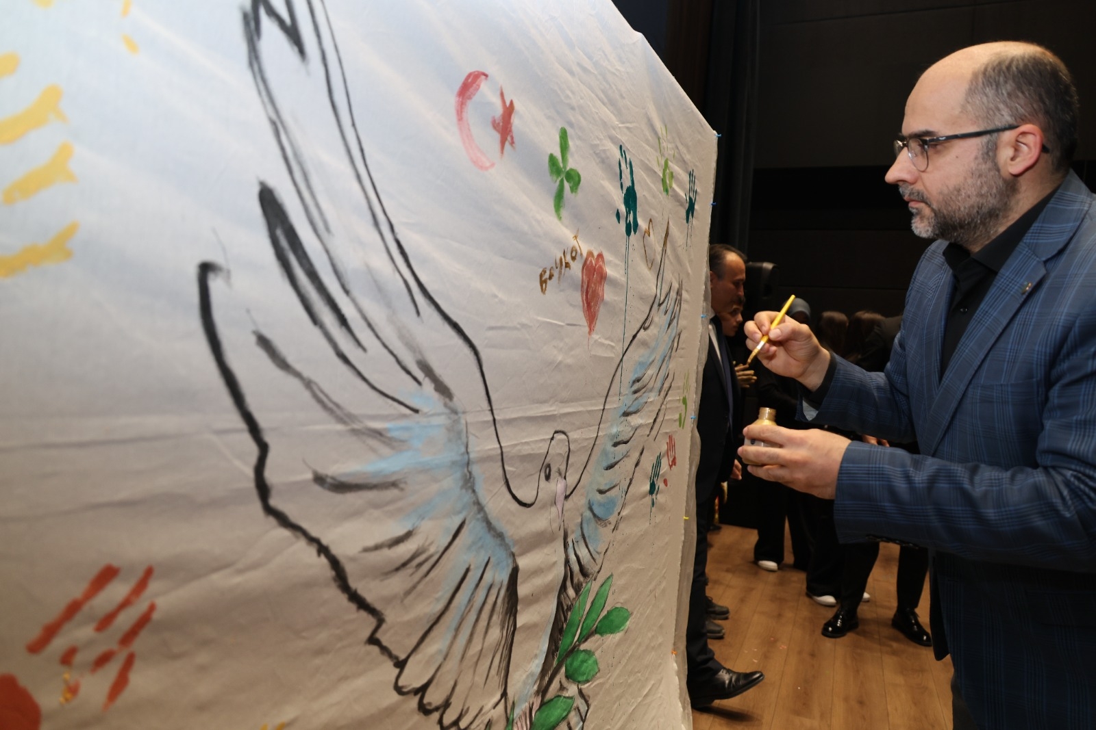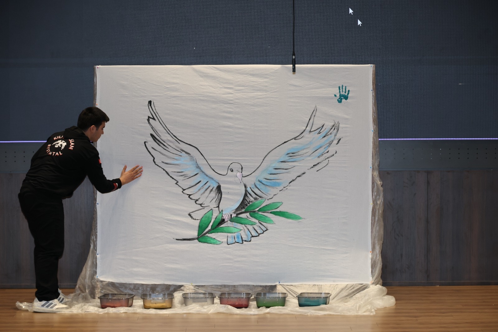 Program, yarışmalarda dereceye giren öğrencilere ödüllerinin takdim edilmesinin ardından, öğrencilerin sahnede yer alan barış temalı afişi renklendirmesiyle, evrensel barış mesajının hep birlikte verilmesiyle sona erdi.