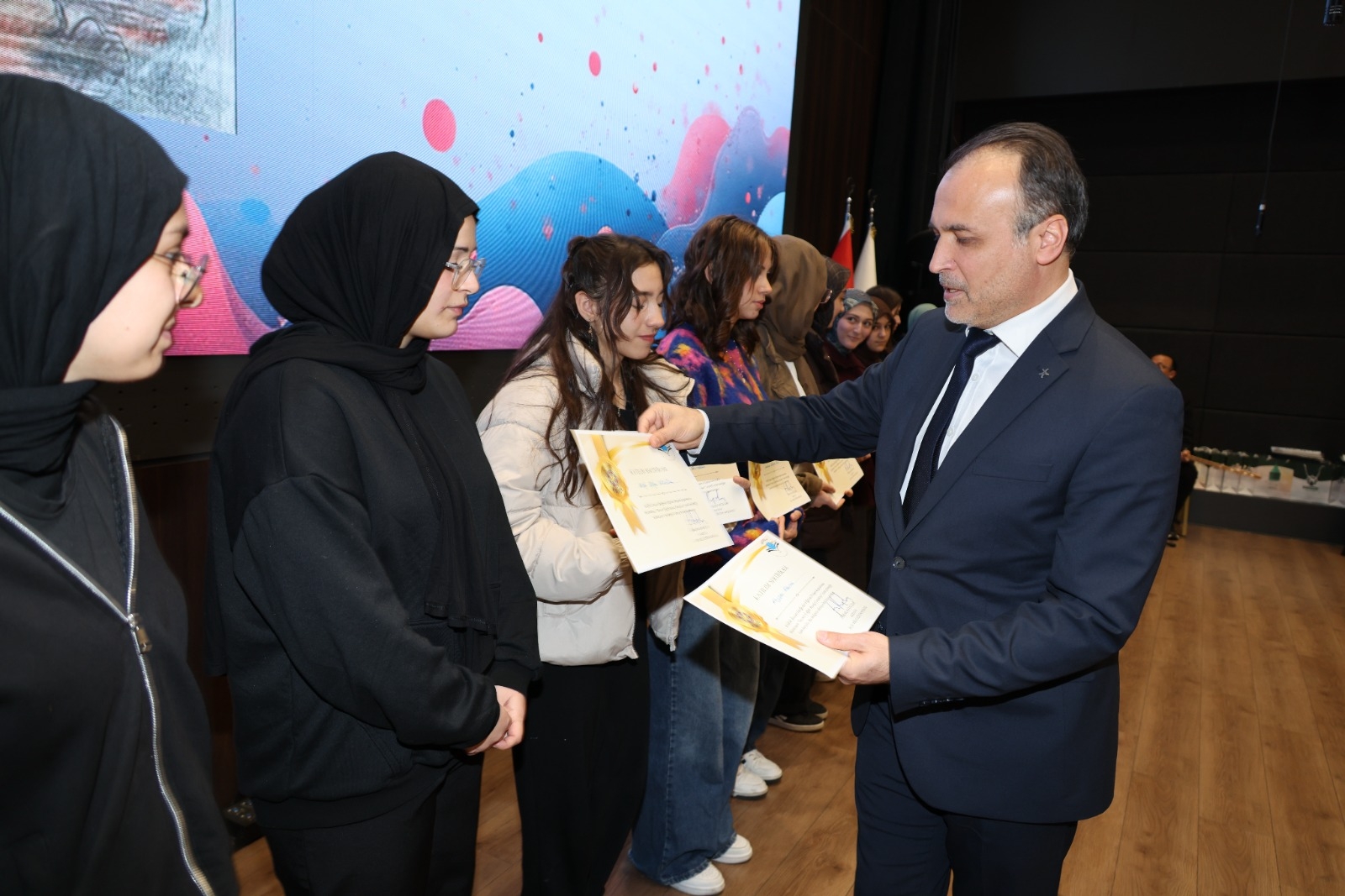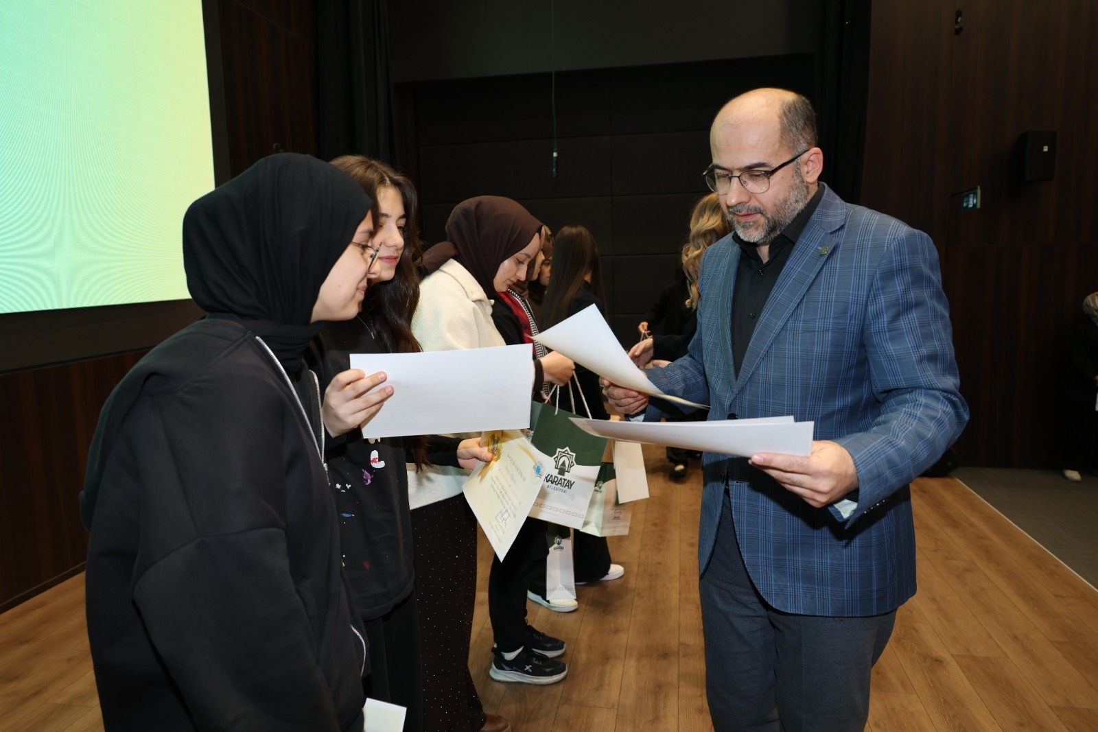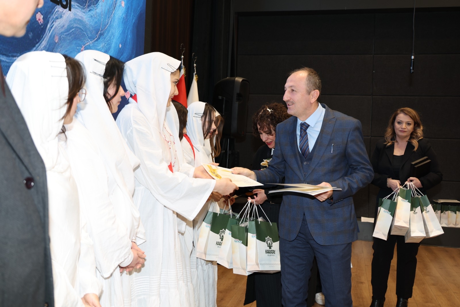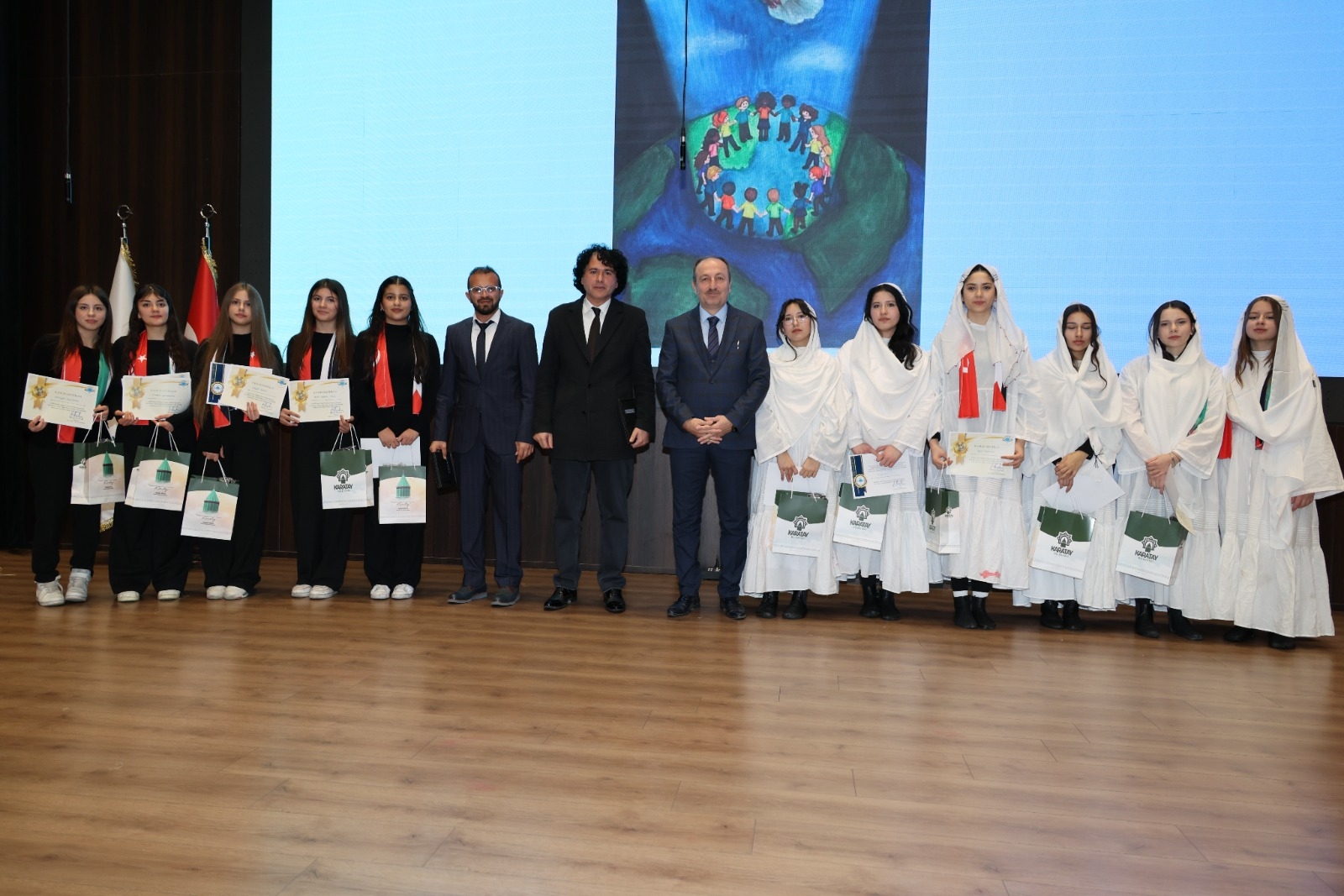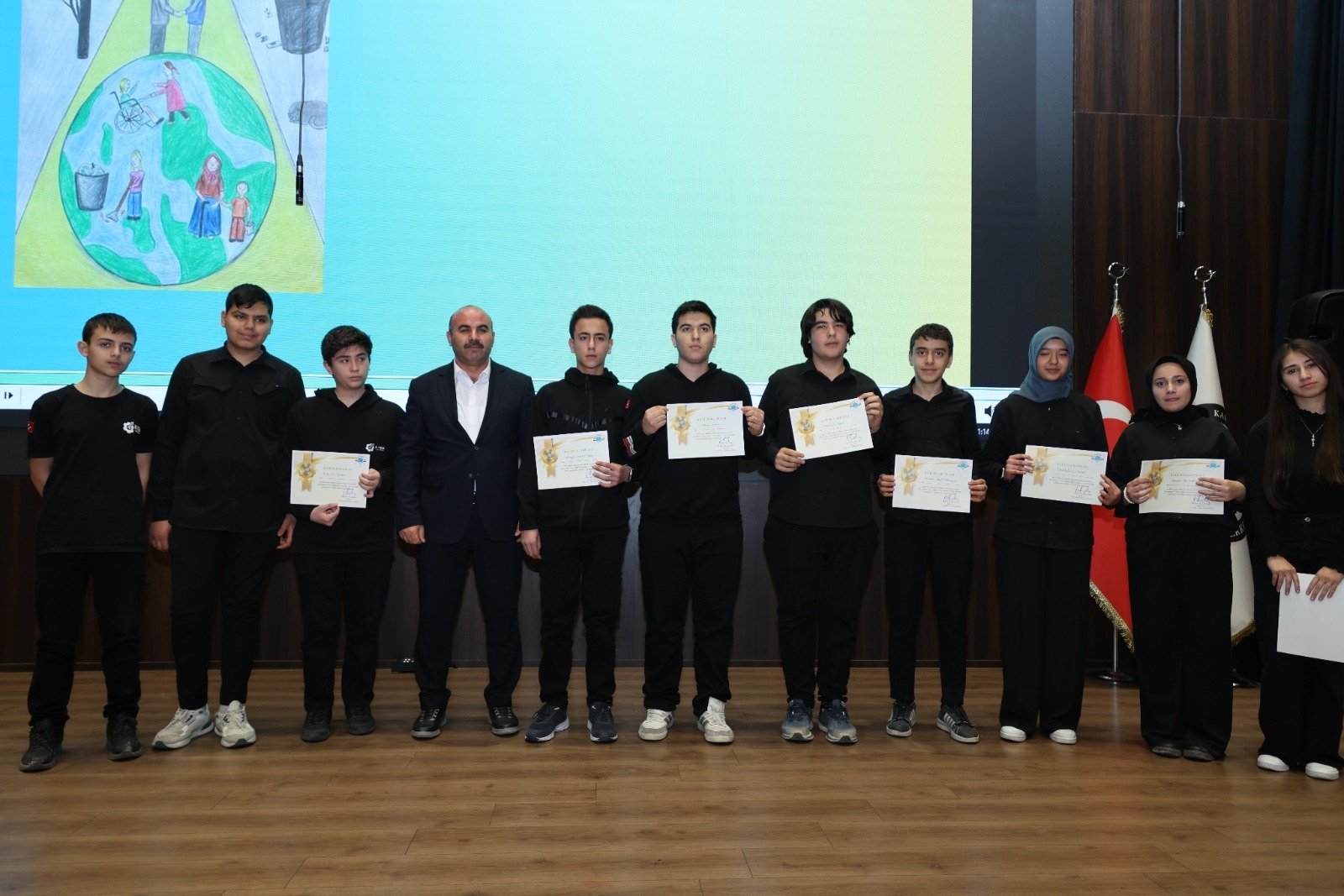 Öğrencilerin insani değerler, barış, empati ve toplumsal farkındalık bilinciyle hazırladıkları eserlerin ödüllendirildiği törene; Karatay Belediye Başkan Yardımcısı Sayın Osman Ciğer, Konya İl Millî Eğitim Müdür Yardımcısı Sayın Bayram Ali Çelik, Karatay İlçe Millî Eğitim Müdürü Sayın Turan Kayacılar ile birlikte İlçe Millî Eğitim Şube Müdürleri, okul müdürleri, öğretmenler ve öğrenciler katıldı.